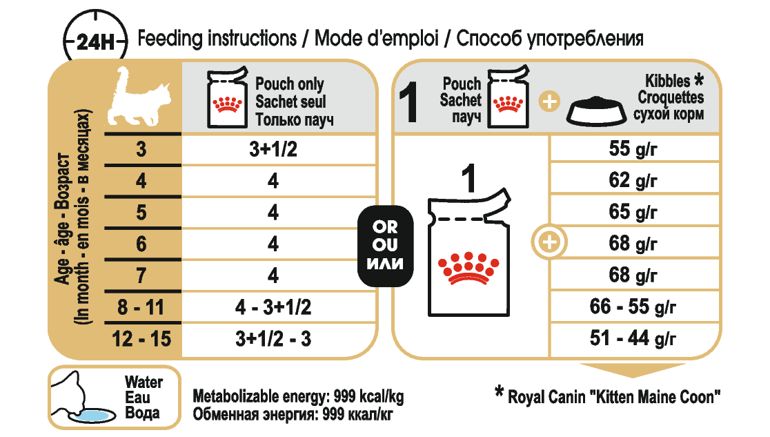Kuivattu lintuvalkuainen, vehnägluteeni*, riisi, maissi, eläinrasvat, maissigluteeni, soijakuitu, hydrolysoidut eläinvalkuaiset, sikurimassa, kivennäisaineet, soijaöljy, kalaöljy, hiivatuotteet, frukto-oligosakkaridit, maissijauho, hiiva (mannaani-oligosakkaridien lähde), boorageöljy, hydrolysoitu äyriäisrasva (glukosamiinin lähde), kehäkukkajauho, hydrolysoitu rusto (kondroitiinin lähde).