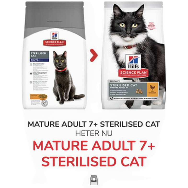 Hills-kuivaruoka kanalla steriloiduille tai kastroiduille vanhemmille kissoille. Kananmakuinen kuivaruoka steriloiduille ja kastroiduille aikuisille, yli 7-vuotiaille kissoille. Sopii erinomaisesti kastroiduille vanhemmille kissoille. Hills Science Plan Feline Mature 7+ Sterilised Chicken.