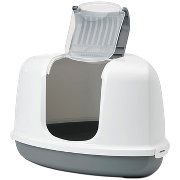 / Kattlåda Nestor Corner med tak, 58x45x40cm, Grå
