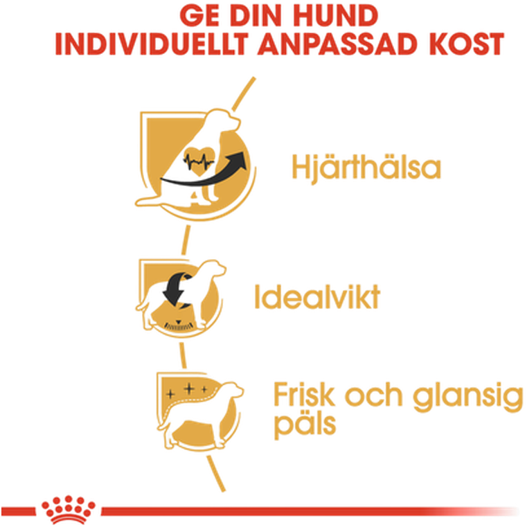 Riisi, kasviproteiini-isolaatti*, kuivattu lintuproteiini, maissi, eläinrasva, hydrolysoitu eläinproteiini, sokerijuurikasmassa, kasvikuitu, kivennäisaineet, kalaöljy, soijaöljy, kuivattu tomaatti, frukto-oligosakkaridit, hiivahydrolysaatti (sisältää mannaani-oligosakkarideja), boorageöljy (0,1 %), kehäkukkajauho, äyriäishydrolysaatti (sisältää glukosamiinia), rustohydrolysaatti (sisältää kondroitiiniä).*IP: erittäin hyvin sulavan proteiinin vuoksi valittu proteiini.