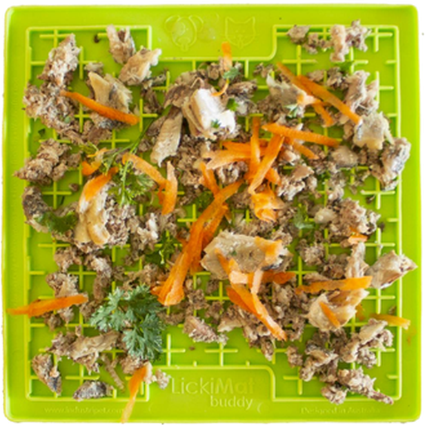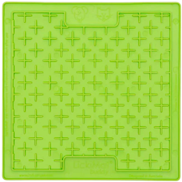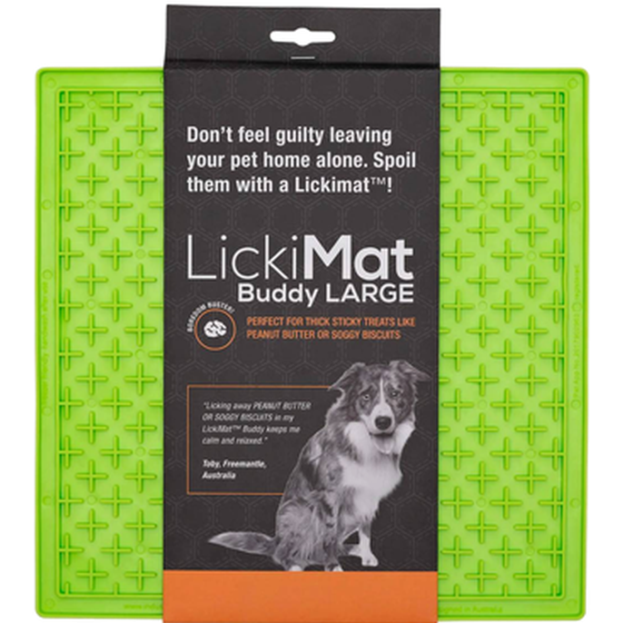 Ruokinta-aktivointi vihreä nuolemismatto koirille ja kissoille - Aktivoi koirasi tai kissasi hauskalla Lickimatin nuolemismatolla/ruokintamatolla. Ripottele siihen koirasi tai kissasi herkkuja, märkäruokaa, nestepitoista ruokaa, pateeta tai Lickimatin omia Sprinklers-strösseliherkkuja. Lickimat-mattoa voidaan käyttää myös tuoreruoan kanssa eri merkeiltä, kuten Mush, Emmzo, Vom & Hungemat. Nuolemisella on rauhoittava vaikutus kissoille ja koirille, ja samalla se edistää suun terveyttä. Syljentuotanto lisääntyy samalla, kun bakteerit kaavitaan kielestä. Hauska aktivointilelu rauhoittavalla vaikutuksella sekä kissalle että koiralle. LickiMat Buddy Large Green