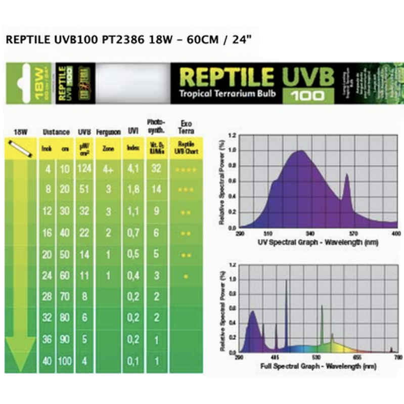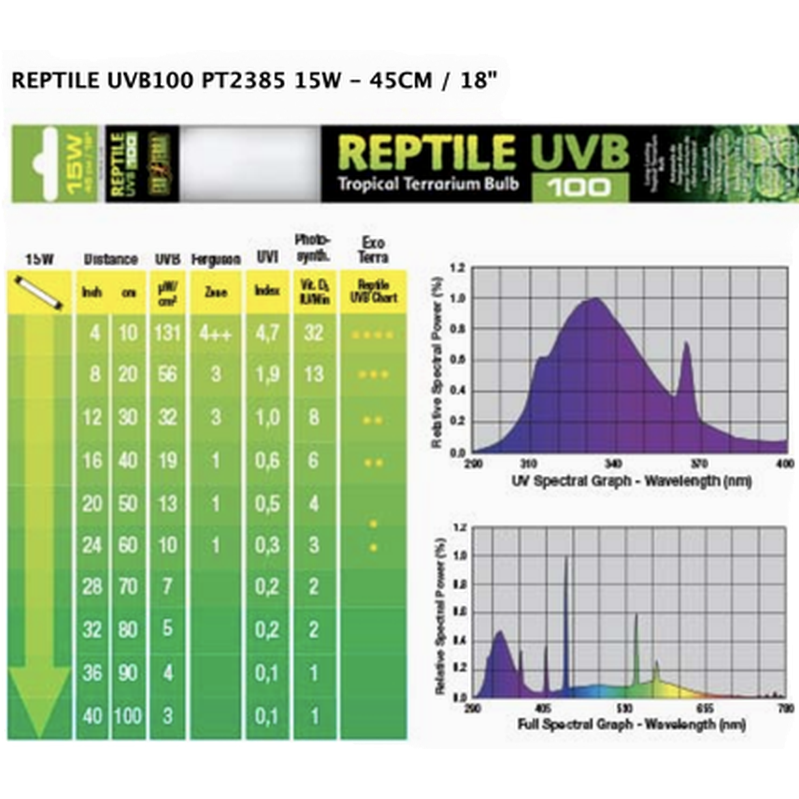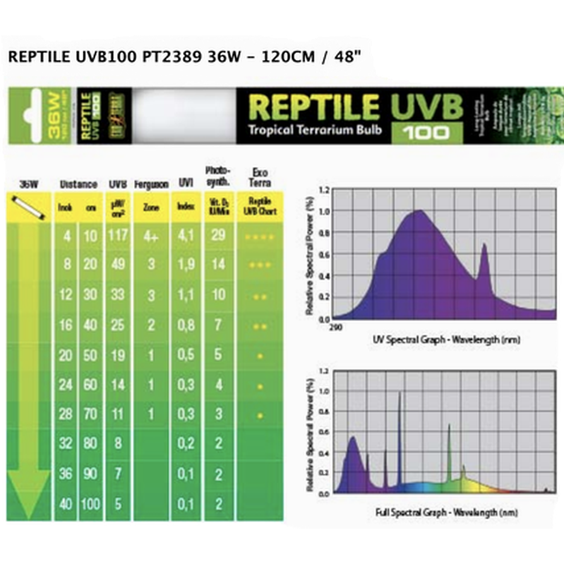 Erinomainen matelijaloisteputki sademetsän eläimille miellyttävällä sekoituksella UVA:ta ja UVB:tä. Exoterran Repti Glo 5.0 -loisteputket ovat tehokkaita 30 cm asti. Sademetsän matelijat saavat matalamman osuuden UV-säteistä, koska puut ja vastaavat useimmiten varjostavat ja estävät suoria auringonsäteitä.