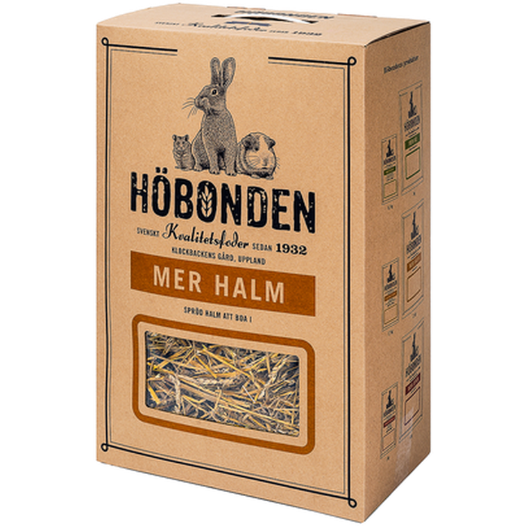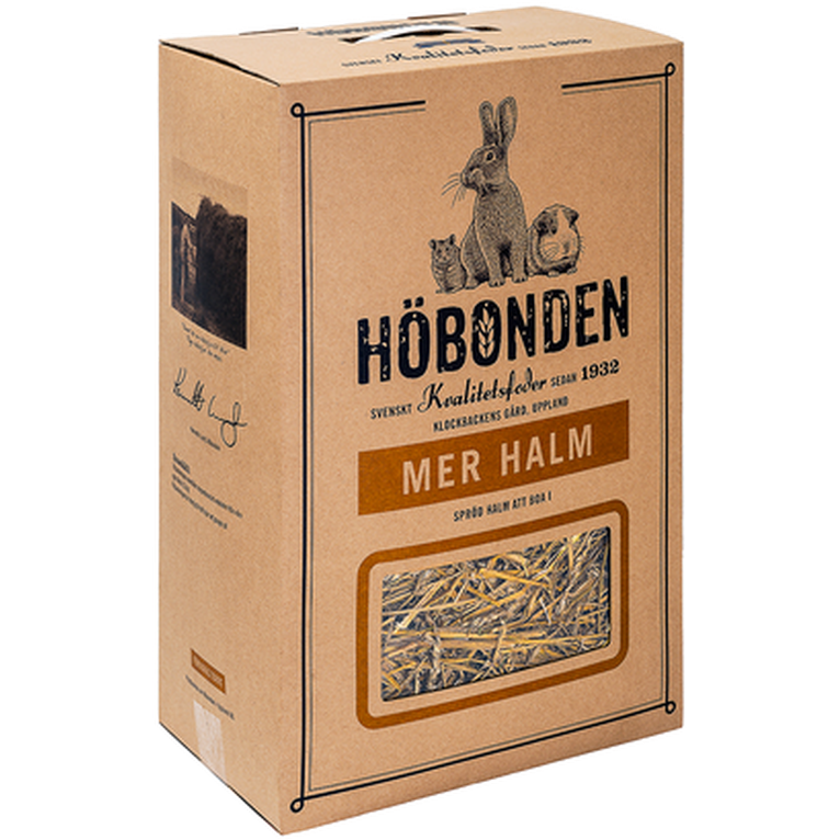 Höbondenin ekologiset rapeat oljet ruotsalaisilta pelloilta. Mer Halmilla voit helposti täyttää olkiautomaatin tai laittaa sisään häkkiin antamaan lemmikillesi puuhaa ja materiaalia, josta se voi tehdä pesän. Wellådan on eläimille vaaraton jyrsiä ja yksinkertaisia sulkea ja säilyttää.
